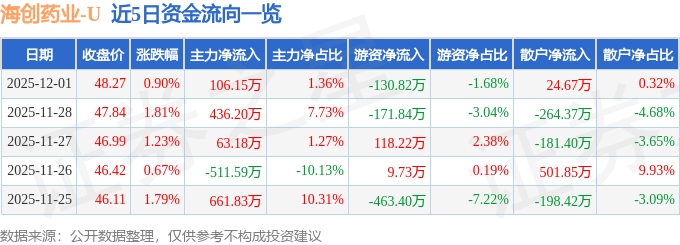 证券之星消息,截至2025年12月1日收盘,海创药业(688302)报收于48.27元,上涨0.9%,换手率1.64%,成交量1.62万手,成交额7779.11万元。