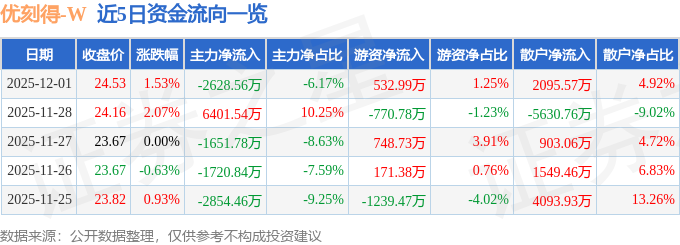 证券之星消息,截至2025年12月1日收盘,优刻得(688158)报收于24.53元,上涨1.53%,换手率4.35%,成交量17.63万手,成交额4.26亿元。