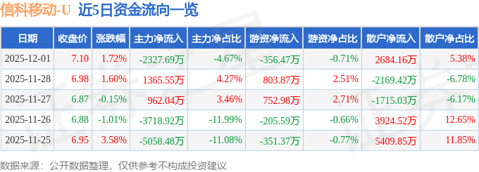 证券之星消息,截至2025年12月1日收盘,信科移动(688387)报收于7.1元,上涨1.72%,换手率3.47%,成交量69.9万手,成交额4.99亿元。