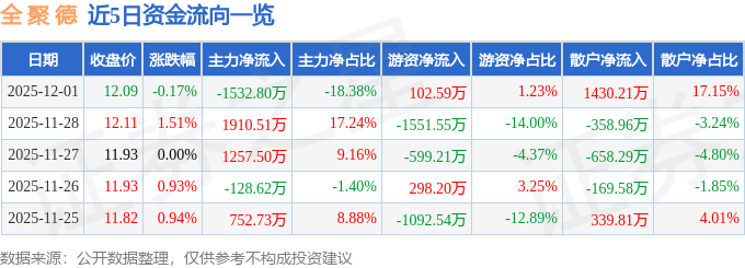12月1日的资金流向数据方面,主力资金净流出1532.8万元,占总成交额18.38%,游资资金净流入102.59万元,占总成交额1.23%,散户资金净流入1430.21万元,占总成交额17.15%。