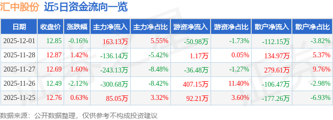 12月1日的资金流向数据方面,主力资金净流入163.13万元,占总成交额5.55%,游资资金净流出50.98万元,占总成交额1.73%,散户资金净流出112.15万元,占总成交额3.82%。