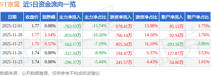 12月1日的资金流向数据方面,主力资金净流出763.53万元,占总成交额15.74%,游资资金净流入678.41万元,占总成交额13.98%,散户资金净流入85.12万元,占总成交额1.75%。