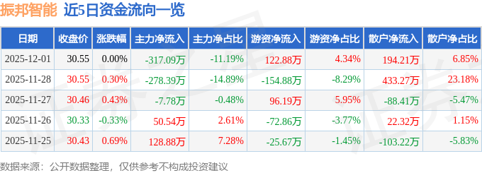 12月1日的资金流向数据方面,主力资金净流出317.09万元,占总成交额11.19%,游资资金净流入122.88万元,占总成交额4.34%,散户资金净流入194.21万元,占总成交额6.85%。