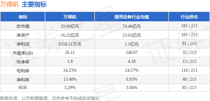 该股主要指标及行业内排名如下: