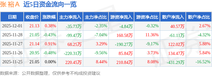 12月1日的资金流向数据方面,主力资金净流出35.73万元,占总成交额2.35%,游资资金净流出4.84万元,占总成交额0.32%,散户资金净流入40.57万元,占总成交额2.67%。
