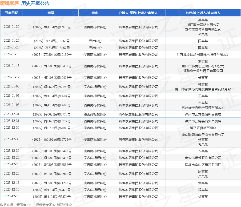 证券之星消息,根据天眼查APP显示,近日公布了一则箭牌家居集团股份有限公司作为原告/上诉人的开庭公告,详细内容如下: