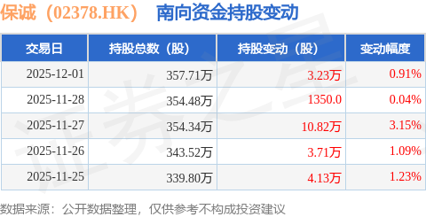 证券之星消息,12月1日南向资金增持3.23万股保诚(02378.HK)。近5个交易日中,获南向资金增持的有5天,累计净增持22.04万股。近20个交易日中,获南向资金增持的有18天,累计净增持55.56万股。截至目前,南向资金持有保诚(02378.HK)357.71万股,占公司已发行普通股的0.13%。