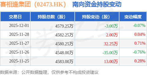 证券之星消息,12月1日南向资金减持3.0万股喜相逢集团(02473.HK)。近5个交易日中,获南向资金增持的有3天,累计净增持9.25万股。近20个交易日中,获南向资金减持的有12天,累计净减持10.0万股。截至目前,南向资金持有喜相逢集团(02473.HK)4579.25万股,占公司已发行普通股的2.95%。