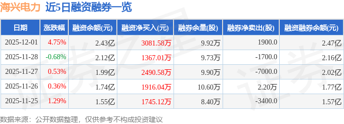 海兴电力融资融券信息显示,融资方面,当日融资买入4820.87万元,融资偿还1739.29万元,融资净买入3081.58万元,连续3日净买入累计6939.18万元。融券方面,融券卖出9300.0股,融券偿还7400.0股,融券余量9.92万股,融券余额350.37万元。融资融券余额2.47亿元。