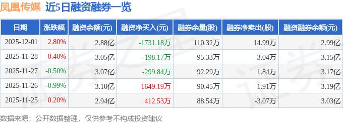 凤凰传媒融资融券信息显示,融资方面,当日融资买入2468.15万元,融资偿还4199.33万元,融资净偿还1731.18万元。融券方面,融券卖出15.7万股,融券偿还7100.0股,融券余量110.32万股,融券余额1132.99万元。融资融券余额2.99亿元。