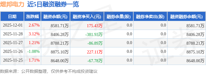 煜邦电力融资融券信息显示,融资方面,当日融资买入897.08万元,融资偿还721.65万元,融资净买入175.43万元。融券方面,融券卖出0.0股,融券偿还0.0股,融券余量0.0股,融券余额0.0万元。融资融券余额8581.71万元。