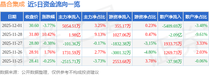 12月1日的资金流向数据方面,主力资金净流入5054.51万元,占总成交额3.25%,游资资金净流入355.17万元,占总成交额0.23%,散户资金净流出5409.69万元,占总成交额3.48%。