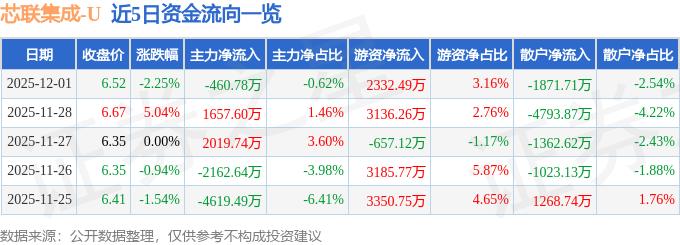 证券之星消息,截至2025年12月1日收盘,芯联集成(688469)报收于6.52元,下跌2.25%,换手率2.55%,成交量112.98万手,成交额7.38亿元。