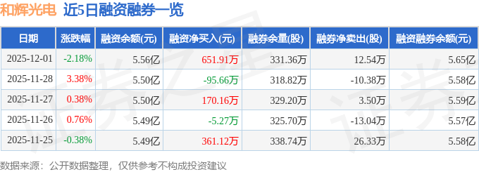 和辉光电融资融券信息显示,融资方面,当日融资买入1884.36万元,融资偿还1232.45万元,融资净买入651.91万元。融券方面,融券卖出23.3万股,融券偿还10.76万股,融券余量331.36万股,融券余额891.36万元。融资融券余额5.65亿元。
