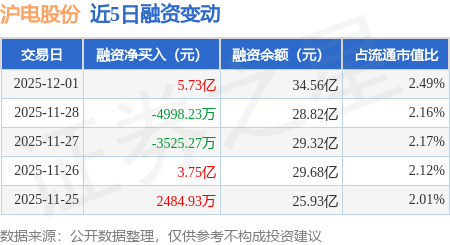 证券之星消息,12月1日,沪电股份(002463)融资买入10.53亿元,融资偿还4.8亿元,融资净买入5.73亿元,融资余额34.56亿元,当日融资净买入排名第1。