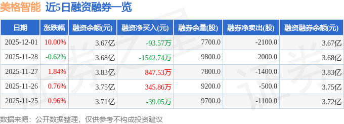 证券之星消息,截至2025年12月1日收盘,美格智能(002881)报收于45.87元,上涨10.0%,涨停,换手率6.92%,成交量12.59万手,成交额5.61亿元。