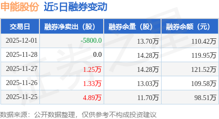 证券之星消息,12月1日,申能股份(600642)融资买入5991.9万元,融资偿还1399.75万元,融资净买入4592.15万元,融资余额2.64亿元。