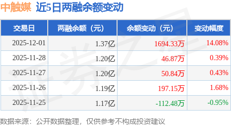 证券之星消息,12月1日,中触媒(688267)融资买入3132.02万元,融资偿还1437.69万元,融资净买入1694.33万元,融资余额1.37亿元,近3个交易日已连续净买入累计1792.04万元。