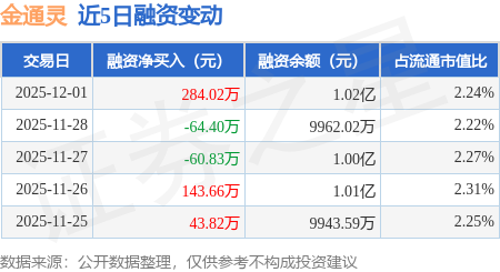 证券之星消息,12月1日,金通灵(300091)融资买入1004.39万元,融资偿还720.37万元,融资净买入284.02万元,融资余额1.02亿元。