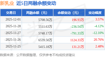 证券之星消息,12月1日,新乳业(002946)融资买入870.24万元,融资偿还655.98万元,融资净买入214.26万元,融资余额5657.32万元,近20个交易日中有14个交易日出现融资净买入。
