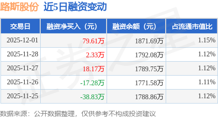 证券之星消息,12月1日,路斯股份(920419)融资买入193.78万元,融资偿还114.17万元,融资净买入79.61万元,融资余额1871.69万元,近3个交易日已连续净买入累计100.11万元,近20个交易日中有12个交易日出现融资净买入。