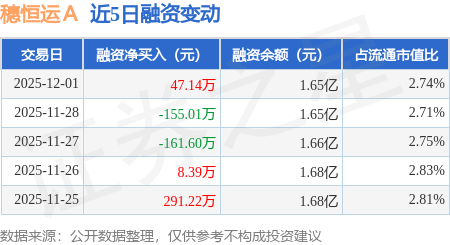证券之星消息,12月1日,穗恒运A(000531)融资买入394.7万元,融资偿还347.56万元,融资净买入47.14万元,融资余额1.65亿元。