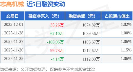 证券之星消息,12月1日,志高机械(920101)融资买入84.14万元,融资偿还48.88万元,融资净买入35.26万元,融资余额1074.82万元。