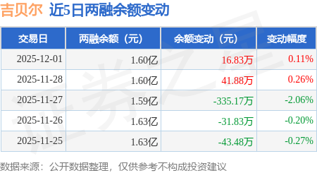证券之星消息,12月1日,吉贝尔(688566)融资买入488.36万元,融资偿还471.53万元,融资净买入16.83万元,融资余额1.6亿元,近20个交易日中有11个交易日出现融资净买入。