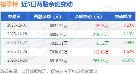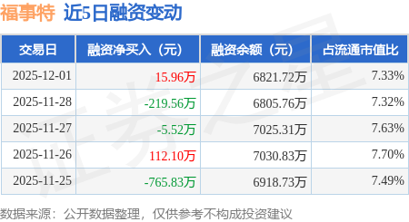 证券之星消息,12月1日,福事特(301446)融资买入538.1万元,融资偿还522.14万元,融资净买入15.96万元,融资余额6821.72万元。