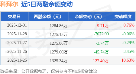 证券之星消息,12月1日,科拜尔(920066)融资买入62.55万元,融资偿还52.84万元,融资净买入9.71万元,融资余额1284.86万元。