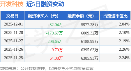 证券之星消息,12月1日,开发科技(920029)融资买入474.61万元,融资偿还506.65万元,融资净卖出32.04万元,融资余额5977.28万元。