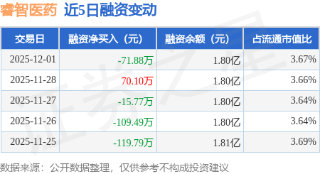 证券之星消息,12月1日,睿智医药(300149)融资买入493.02万元,融资偿还564.9万元,融资净卖出71.88万元,融资余额1.8亿元。