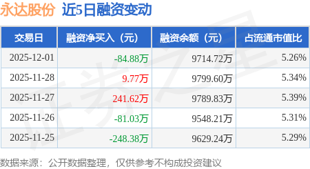 证券之星消息,12月1日,永达股份(001239)融资买入275.38万元,融资偿还360.26万元,融资净卖出84.88万元,融资余额9714.72万元。