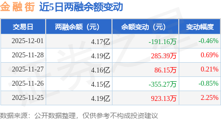 证券之星消息,12月1日,金 融 街(000402)融资买入546.15万元,融资偿还736.66万元,融资净卖出190.51万元,融资余额4.16亿元。