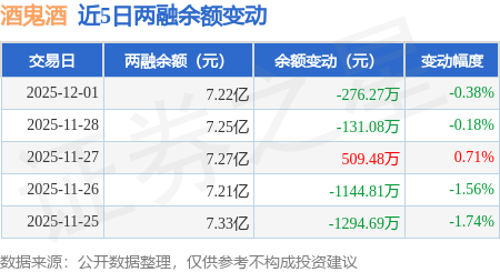 证券之星消息,12月1日,酒鬼酒(000799)融资买入3006.89万元,融资偿还3283.17万元,融资净卖出276.27万元,融资余额7.22亿元。