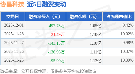 证券之星消息,12月1日,协昌科技(301418)融资买入229.3万元,融资偿还727.03万元,融资净卖出497.73万元,融资余额1.05亿元。