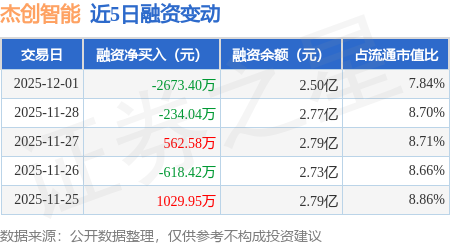 证券之星消息,12月1日,杰创智能(301248)融资买入1441.55万元,融资偿还4114.95万元,融资净卖出2673.4万元,融资余额2.5亿元。