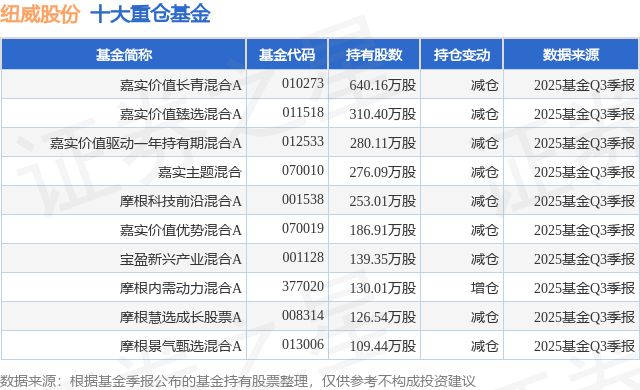根据2025基金Q3季报公募基金重仓股数据,重仓该股的公募基金共63家,其中持有数量最多的公募基金为嘉实基金的嘉实价值长青混合A。嘉实价值长青混合A目前规模为33.99亿元,最新净值1.0169(12月1日),较上一交易日上涨1.45%,近一年上涨20.2%。该公募基金现任基金经理为谭丽。谭丽在任的基金产品包括:嘉实新消费股票A,管理时间为2017年4月11日至今,期间收益率为145.91%;嘉实价值精选股票A,管理时间为2017年11月6日至今,期间收益率为125.4%;嘉实价值优势混合A,管理时间为2017年11月14日至今,期间收益率为87.05%;