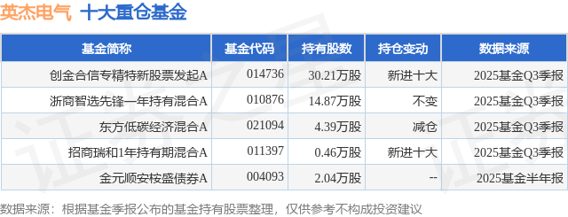 根据2025基金Q3季报公募基金重仓股数据,重仓该股的公募基金共4家,其中持有数量最多的公募基金为创金合信基金的创金合信专精特新股票发起A。创金合信专精特新股票发起A目前规模为1.07亿元,最新净值1.57(12月1日),较上一交易日上涨0.19%,近一年上涨27.19%。该公募基金现任基金经理为王先伟。王先伟在任的基金产品包括:创金合信积极成长股票A,管理时间为2021年2月26日至今,期间收益率为34.88%;