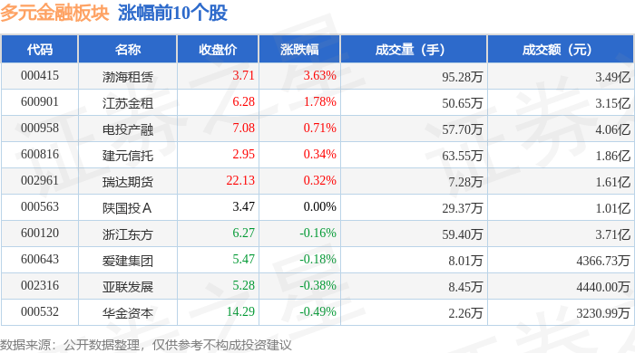 证券之星消息,12月2日多元金融板块较上一交易日下跌0.8%,海德股份领跌。当日上证指数报收于3897.71,下跌0.42%。深证成指报收于13056.7,下跌0.68%。多元金融板块个股涨跌见下表:
