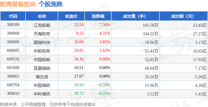 从资金流向上来看,当日航海装备板块主力资金净流入4.64亿元,游资资金净流出1.33亿元,散户资金净流出3.31亿元。航海装备板块个股资金流向见下表:
