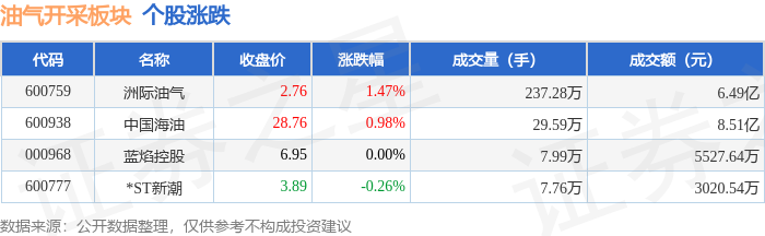 证券之星消息,12月2日油气开采板块较上一交易日上涨0.73%,洲际油气领涨。当日上证指数报收于3897.71,下跌0.42%。深证成指报收于13056.7,下跌0.68%。油气开采板块个股涨跌见下表: