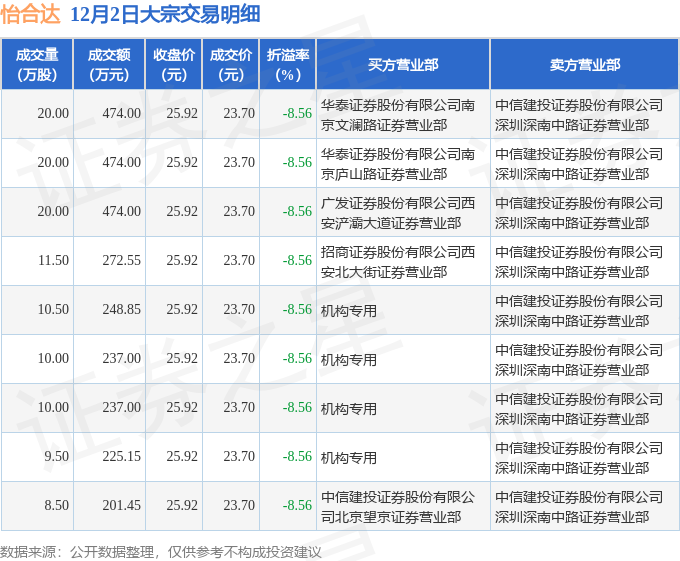 证券之星消息,12月2日怡合达发生大宗交易,交易数据如下: