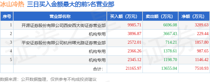 证券之星消息,沪深交易所2025年12月2日公布的交易公开信息显示,冰山冷热(000530)因连续三个交易日内,涨幅偏离值累计达到20%的证券登上龙虎榜。此次是近5个交易日内第1次上榜。