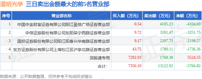 证券之星消息,沪深交易所2025年12月2日公布的交易公开信息显示,道明光学(002632)因连续三个交易日内,涨幅偏离值累计达到20%的证券登上龙虎榜。此次是近5个交易日内第2次上榜。