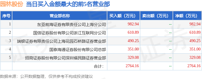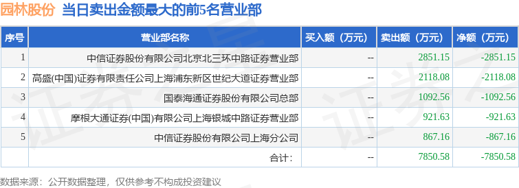 证券之星消息,沪深交易所2025年12月2日公布的交易公开信息显示,园林股份(605303)因有价格涨跌幅限制的日收盘价格跌幅偏离值达到7%的前五只证券登上龙虎榜。此次是近5个交易日内第1次上榜。
