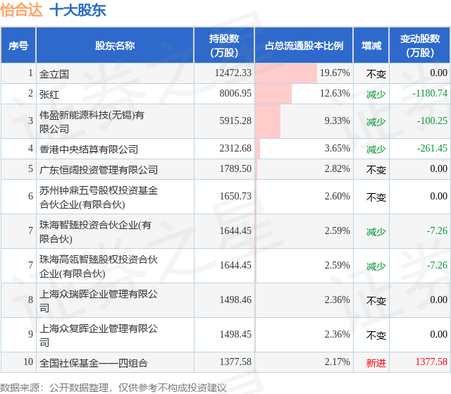 根据怡合达2025年三季报公布的十大股东详情如下: