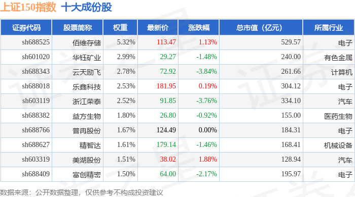 上证150(000133)指数十大成份股详情如下: