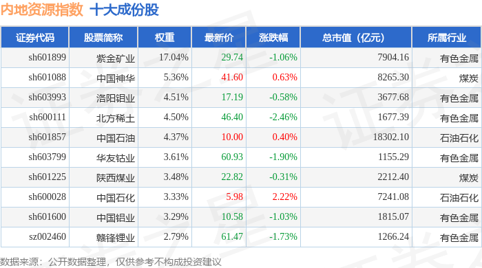 资金流向方面,内地资源(000944)指数成份股当日主力资金净流出合计26.13亿元,游资资金净流入合计6.44亿元,散户资金净流入合计19.69亿元。成份股资金流向详情见下表:
