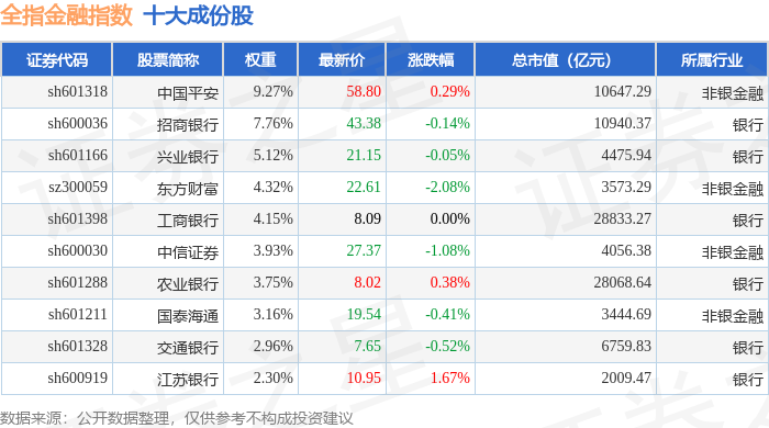 资金流向方面,全指金融(000992)指数成份股当日主力资金净流出合计46.46亿元,游资资金净流入合计13.16亿元,散户资金净流入合计33.3亿元。成份股资金流向详情见下表: